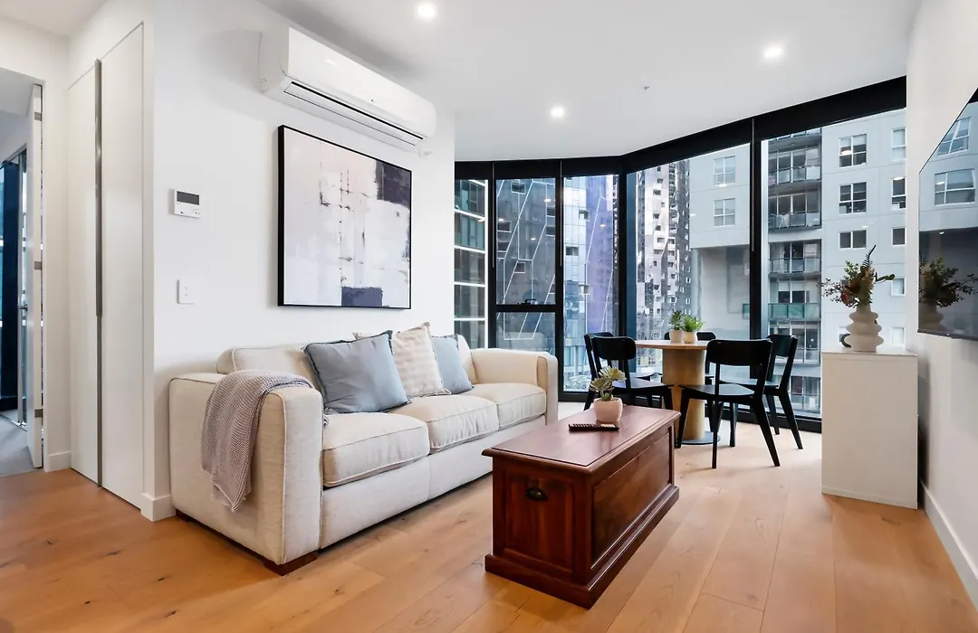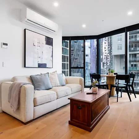 Extra's zijn onder andere een oven en een vaatwasser in een ingerichte keuken. Flinders Street station is binnen 25 minuten te voet van dit appartement.