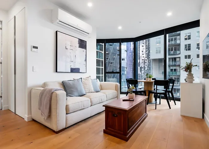 Als u in Modern Apt 100M Fr Parkland W Pool, Gym And Wi-Fi Melbourne van 55 m² verblijft, kunt u het winkelcentrum Emporium Melbourne bereiken, gelegen op ongeveer 20 minuten lopen verderop. In het woongebied worden gasten uitgenodigd om zich te ontspannen in een privézwembad of een bezoek te brengen aan Flagstaff Gardens op 450 meter verderop.